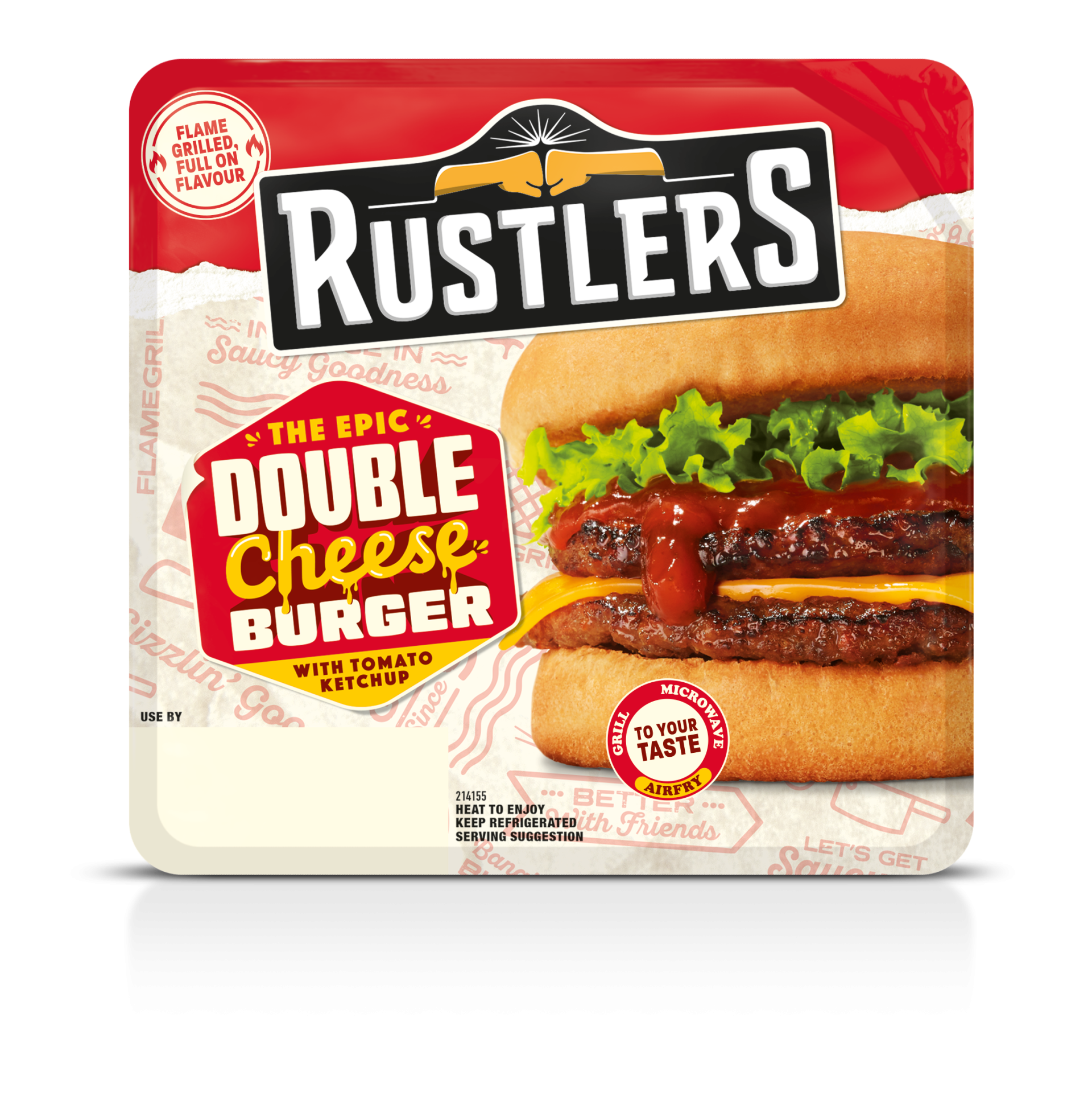 Since 1999, we’ve been supporting our customers who stock Rustlers – genuinely flame grilled burger made with 100% Beef, Pork and Chicken Breast.